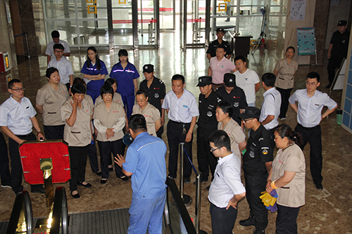 為了提升工作人員電梯運行、使用過程中各類意外和困人事件的處置能力,規范電梯值班員及電梯維保人員的救援措施,同時配合6月份安全生產月的活動,由濰坊昌大公共建筑物業管理有限公司藝術中心項目組織業主及工作人員于二零一七年六月三十日9:00在濰坊市科技館舉行電梯困人應急演練,解救被困人員后由專業電梯維保人員講解直梯和扶梯注意事項及救援措施。